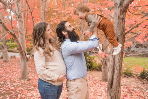 I had the pleasure of photographing my former grad school classmate Caitlin's baby shower for her first child, and now that she's expecting baby number two, she reached out about doing some family photos! We stayed within their neighborhood and a longtime resident gave us the green light to photograph in front of his home so that we could take advantage of the beautiful fall leaves.
